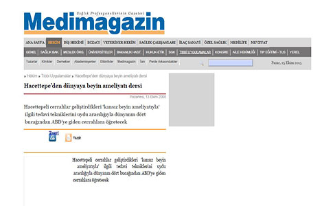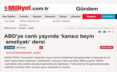 Eğitimin verildiği doktorların bağlı oldukları klinikler arasında Cleveland Clinic, University of California Los Angeles, University of Cornell, University of Oxford gibi dünyanın en önemli merkezleri de vardır. Aynı zamanda yukarda belirtilen ülkelerde, özellikle ABD’de önemli üniversite tıp merkezlerine de davet edilerek tüm dünyada seçilmiş 200’ün üzerinde hastanın endovasküler beyin operasyonunu gerçekleştirmiştir.